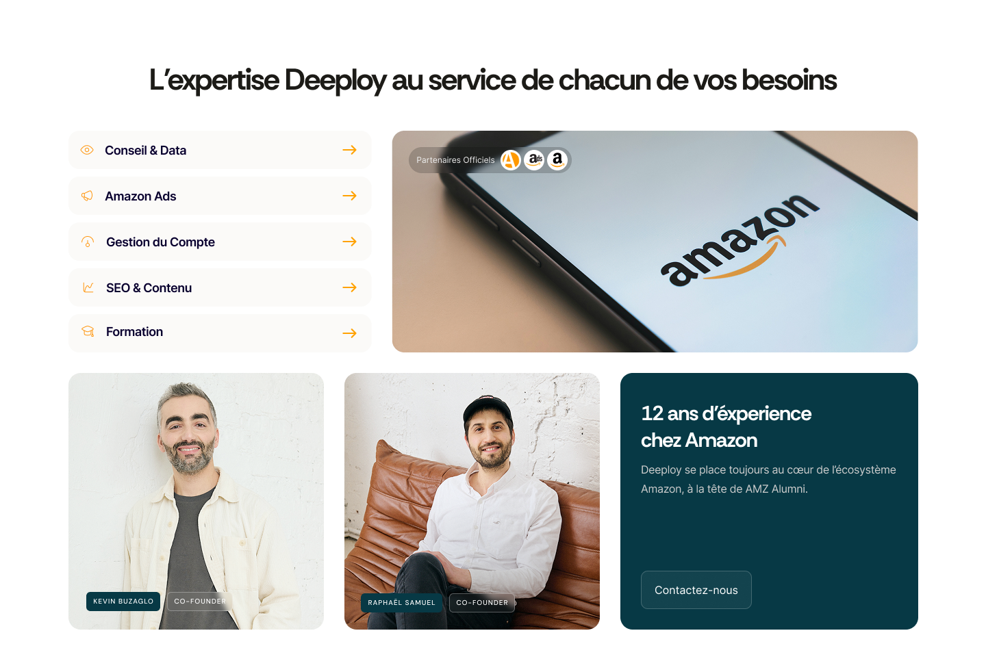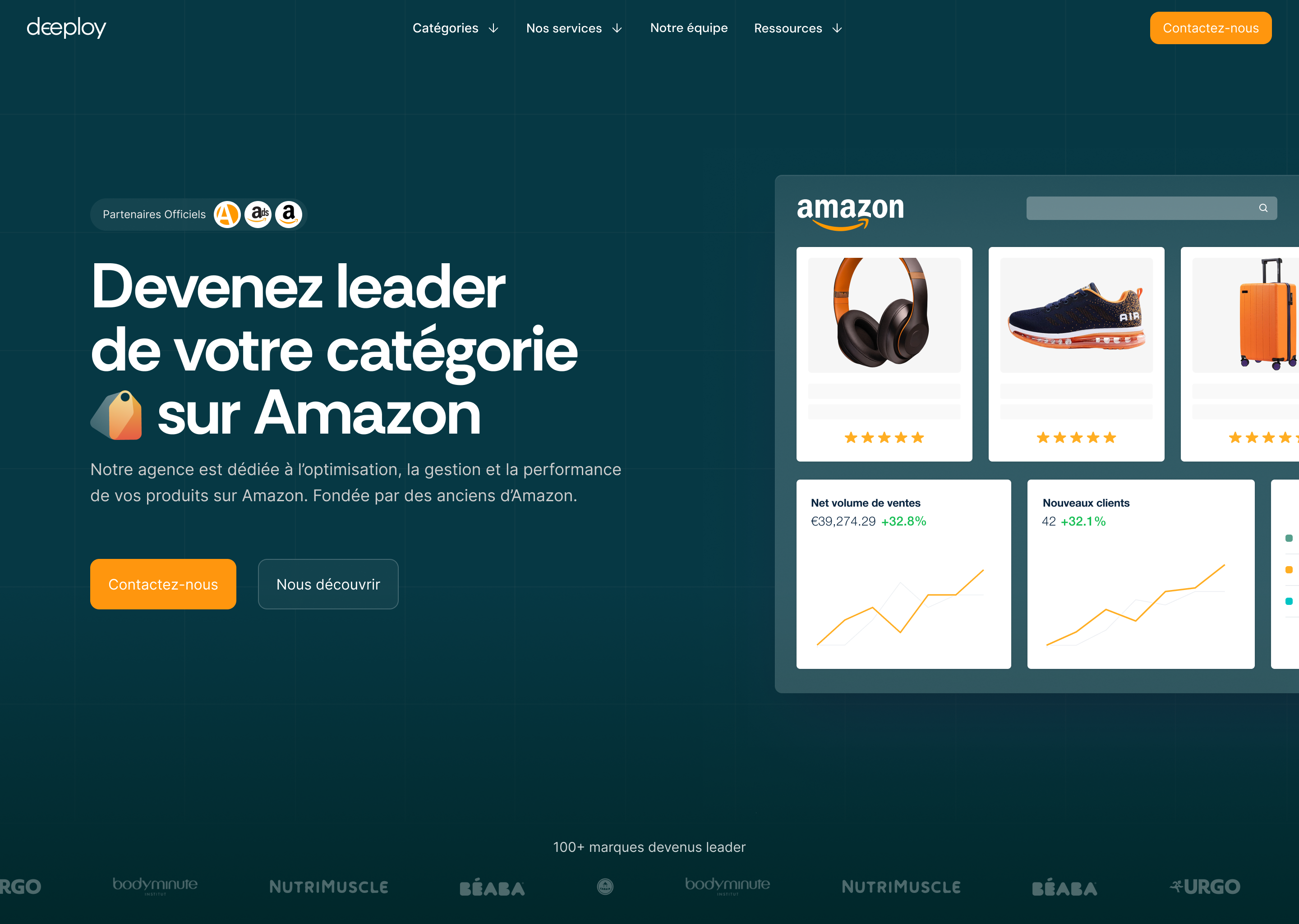 La refonte du site Deeploy vise à moderniser totalement l’expérience visuelle et l’image de marque, en adoptant une charte graphique plus premium, plus actuelle, et alignée avec les codes de confiance et de performance d’Amazon. L’objectif est d’utiliser un design plus épuré, des typographies plus maîtrisées et une palette de couleurs plus technologique, afin de renforcer la crédibilité perçue, valoriser l’expertise Deeploy et améliorer la conversion. L’inspiration Amazon n’est pas une copie, mais un référentiel visuel reconnu qui permettra de positionner Deeploy à un niveau esthétique plus haut de gamme et plus cohérent avec ses ambitions de marque et de marché.